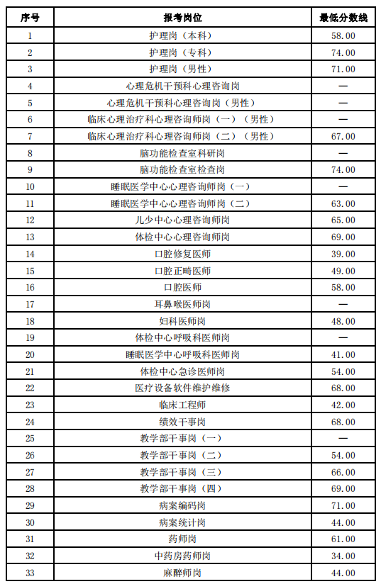 參加筆試的考生請于2021年9月29日起登陸報名網(wǎng)站(網(wǎng)址:http://m.jiumendonghua.com)查詢筆試成績,筆試成績崗位最低分數(shù)線如下: