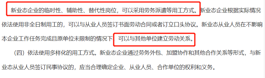該指導(dǎo)意見指出企業(yè)可采用多種用工方式,其中包括勞務(wù)派遣、非全日制用工、勞務(wù)外包和加盟協(xié)作,甚至是其它合作關(guān)系等;