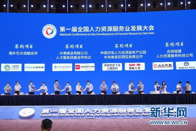 第一屆全國(guó)人力資源服務(wù)業(yè)發(fā)展大會(huì)簽約儀式。新華網(wǎng)發(fā)(重慶市人力社保局供圖)