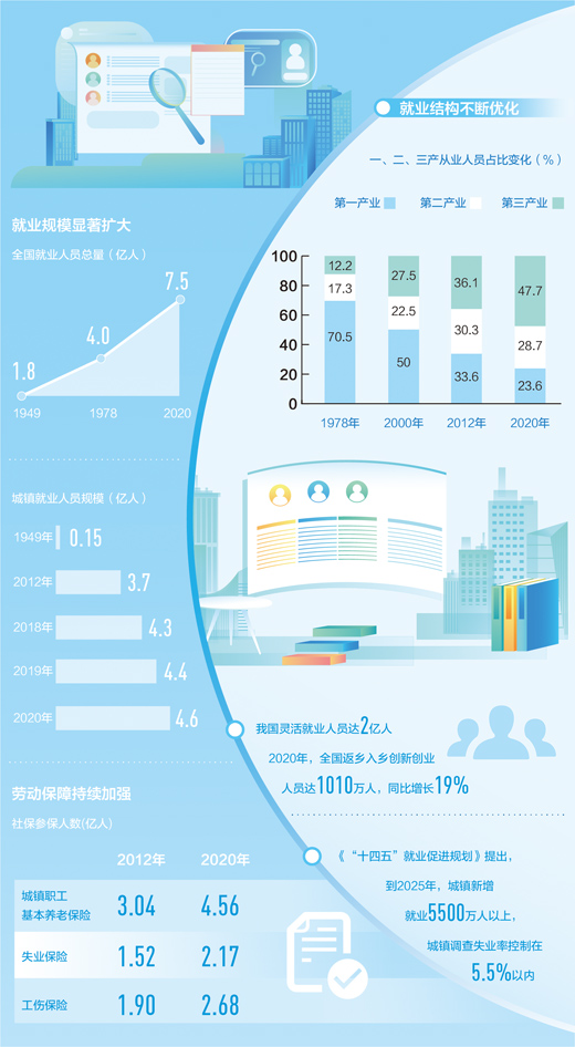 “十四五”促就業(yè)藍圖繪就,實現(xiàn)更加充分更高質(zhì)量就業(yè),為高質(zhì)量發(fā)展注入源源不斷的人才動力。(記者 李心萍)